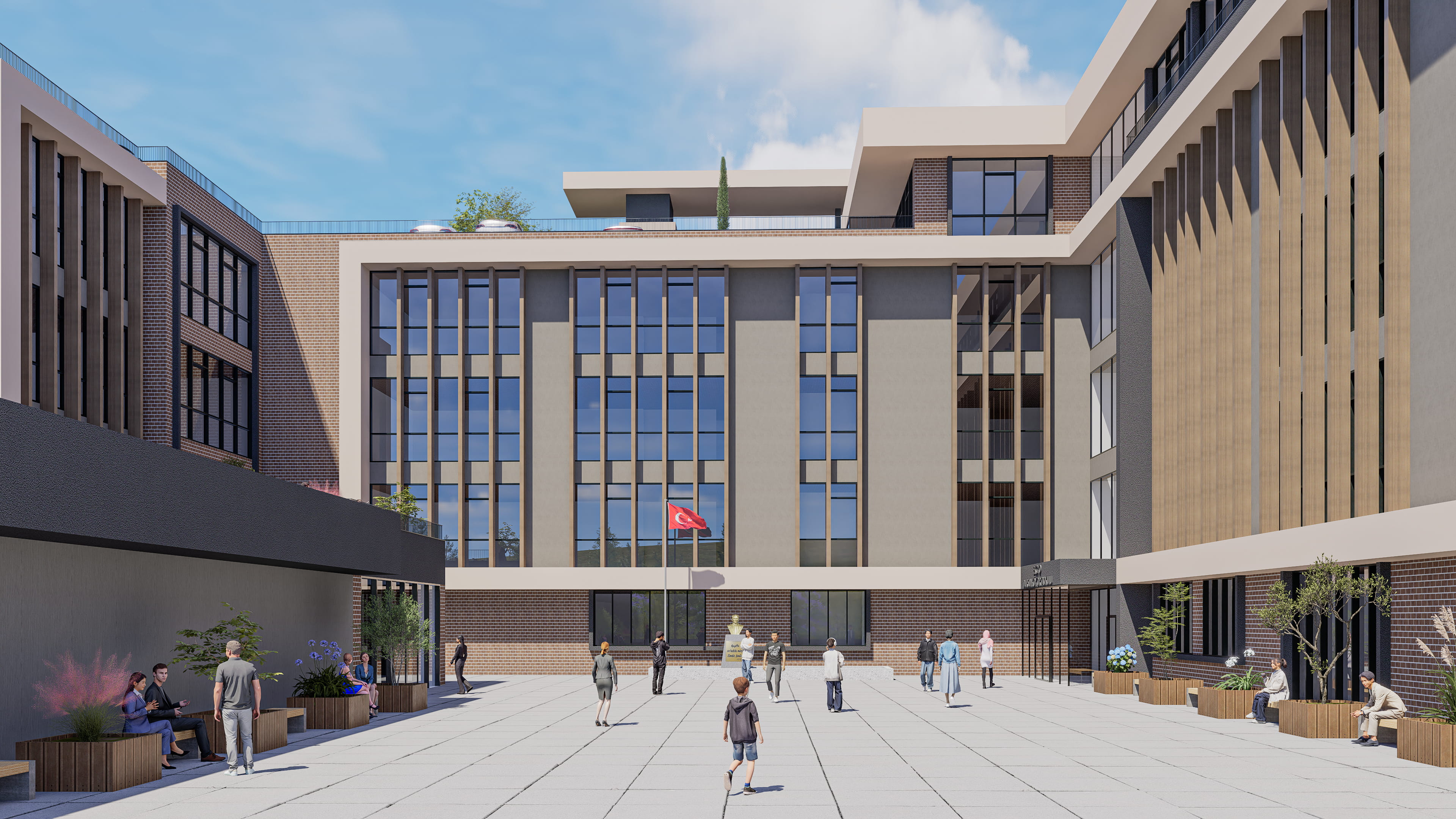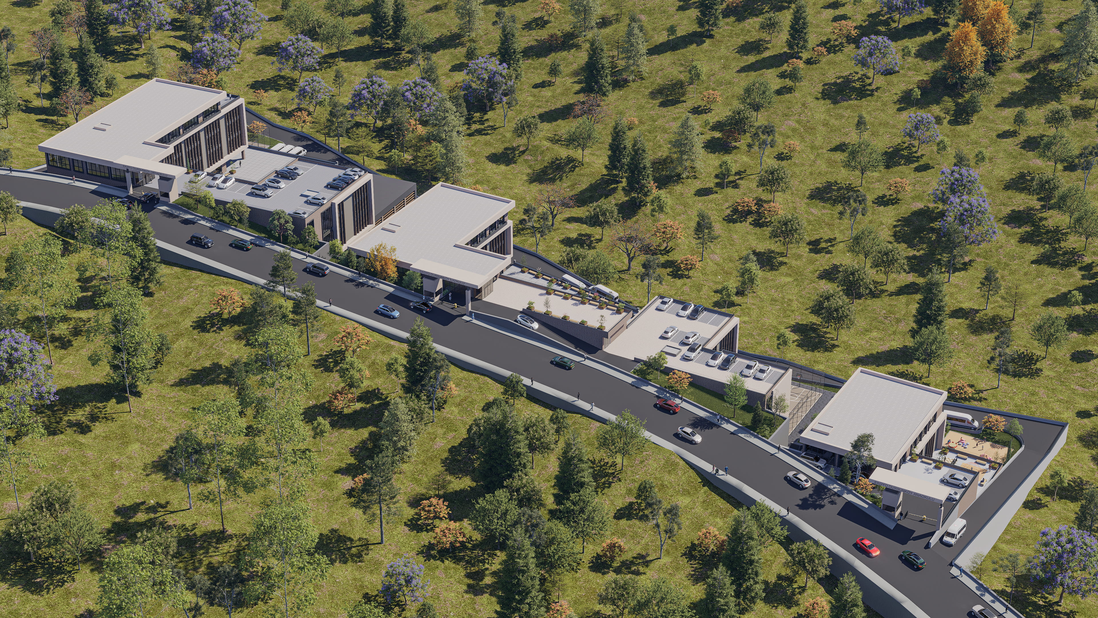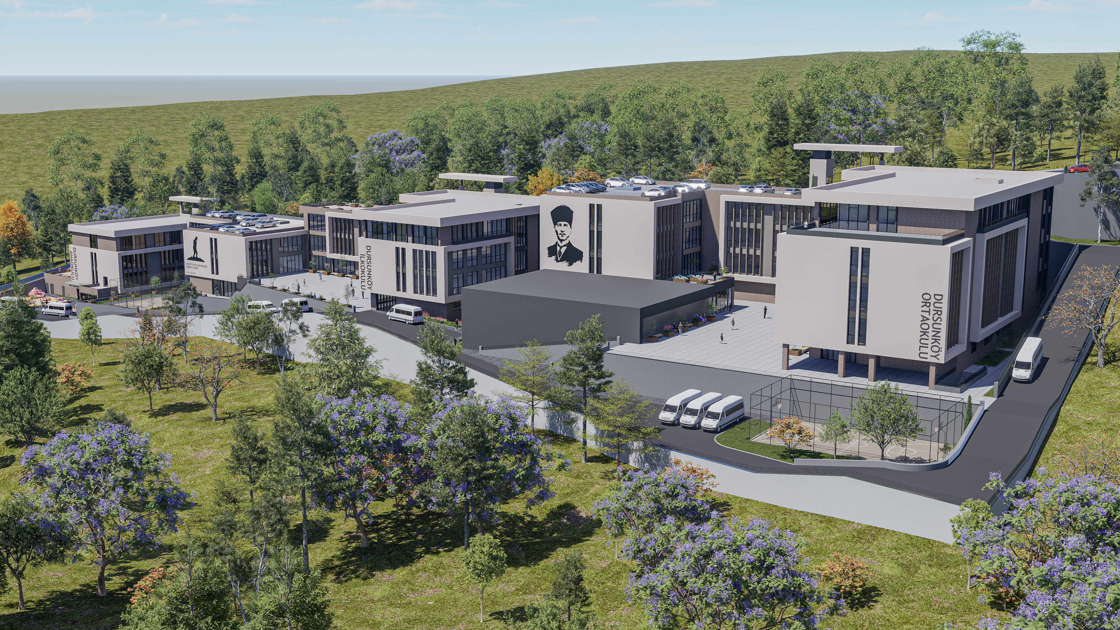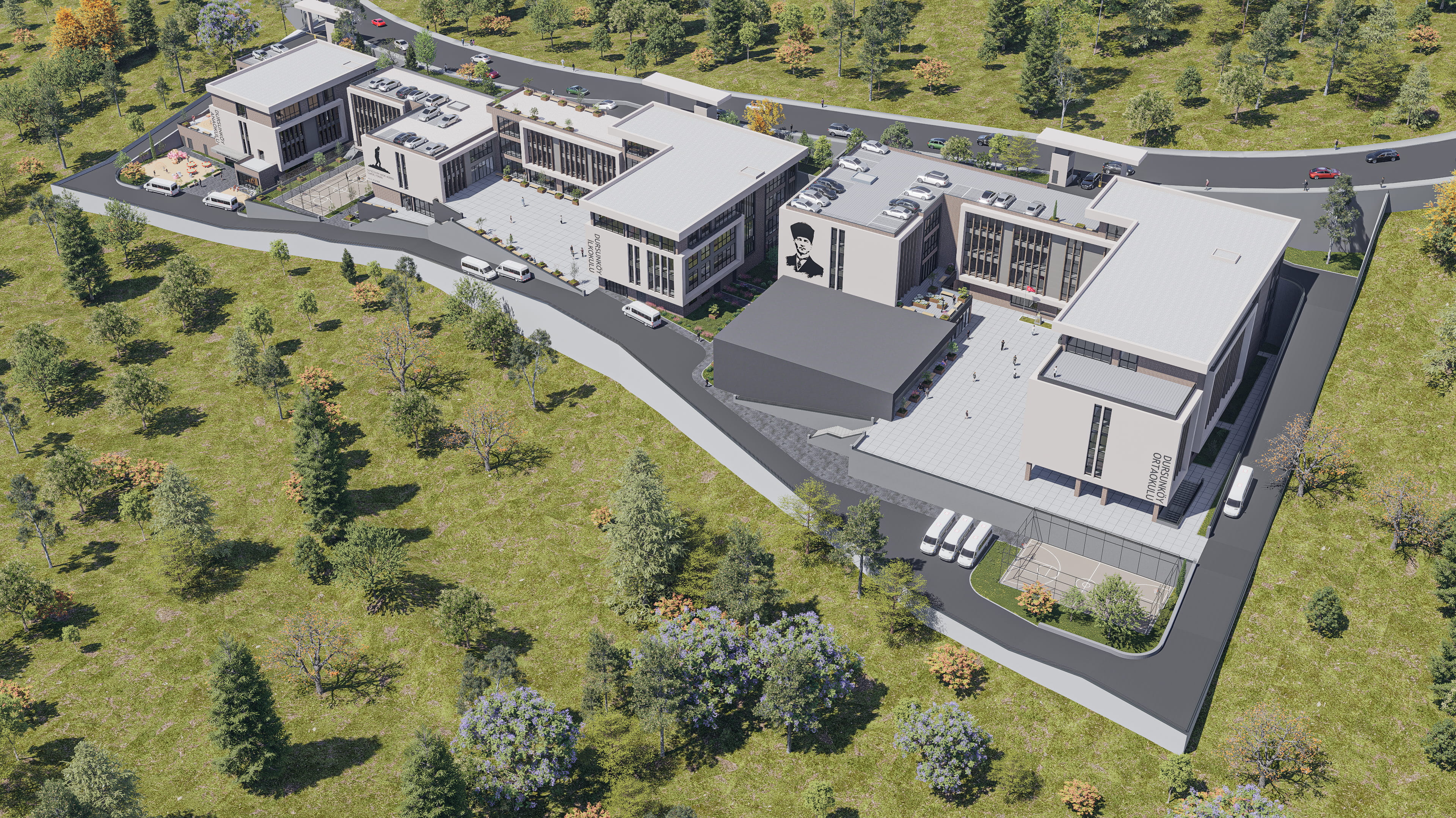 • Yaş gruplarına duyarlı tasarım: Her kademe kendi ihtiyaçlarına göre planlanmış, kontrollü ancak ilişkili bir kampüs düzeni oluşturulmuştur.